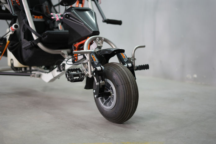 Frame, 160cm hoop/net and spars, premium Helix 3 blade carbon fiber 150cm propeller, prop covers, Aa-Assist System, pilot harness, 16L fuel tank, front and rear suspension, foot brake, Vittorazi Cosmos 300 Dual Start Dual Spark motor mounted, Side mounted rescue container, 210kg SKY rescue parachute, extended risers to attach reserve parachute to trike, reserve bridle protection / uv cover for straps,